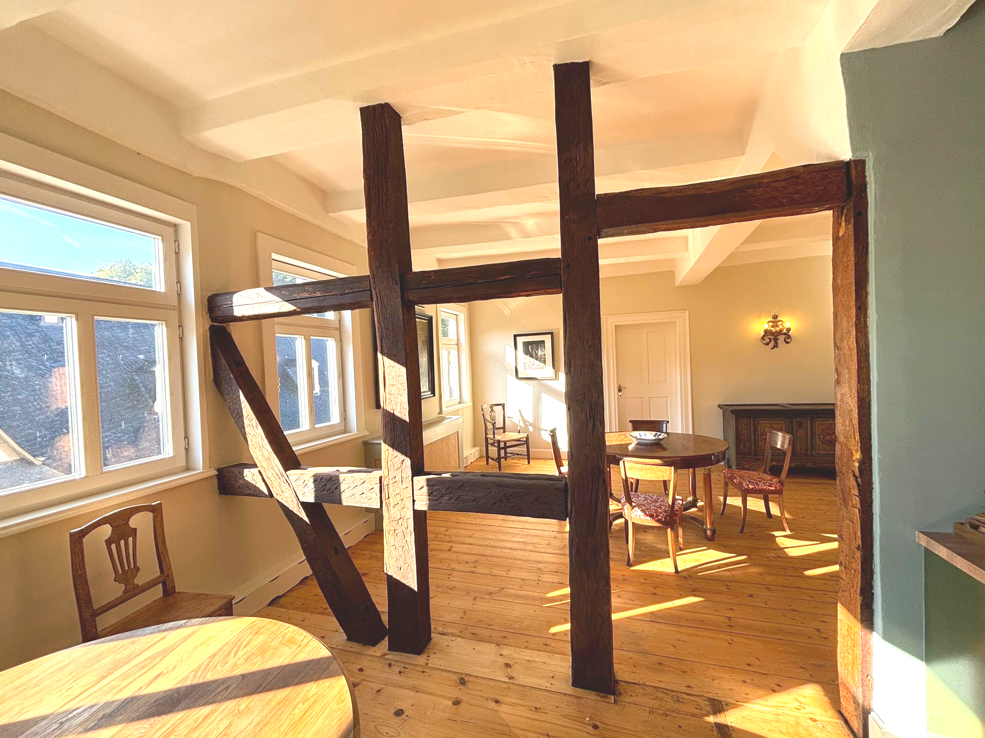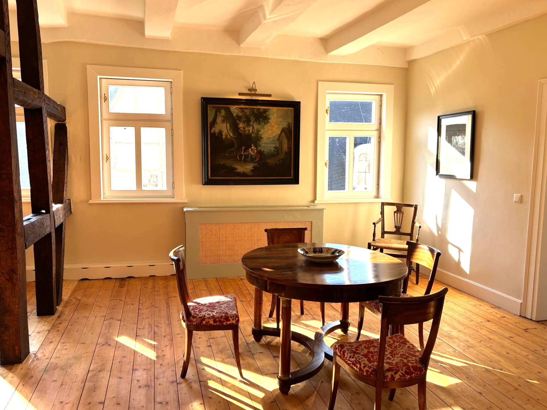 Wir vermieten für kurzzeitige Aufenthalte eine besondere Ferienwohnung in einem sanierten Fachwerkhaus aus dem 18. Jh.